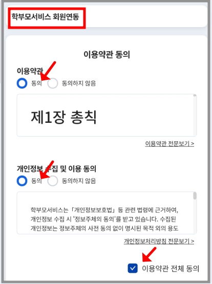 <학부모서비스 회원연동> 동의가 필요합니다.!