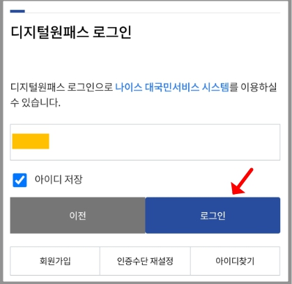 디지털원패스 로그인하기