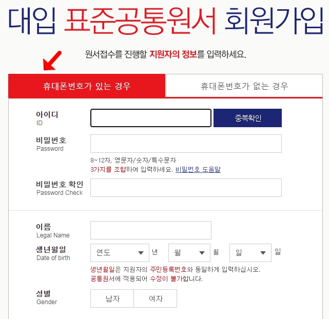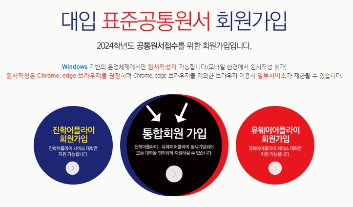 2023년 9월 수시 접수 와 2024년 1월 정시접수를 대비하기 위해 재학생 및 졸업생은 원서접수처 회원가입이 필요합니다.
