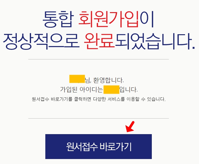 그래서 한곳에서 가입하면 연동되어 접수할 수 있도록 통합회원 가입을 선택합니다.