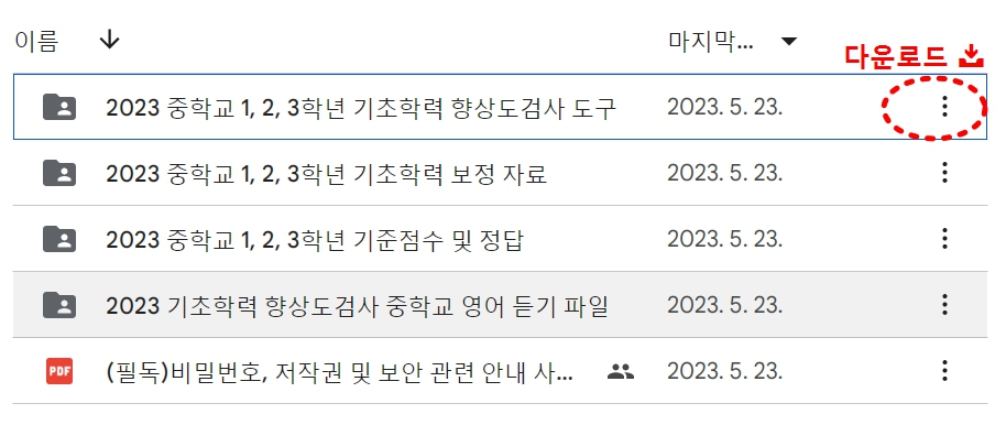 구글 검색을 통해 재외교육기관포털 게시판에서 자료를 찾았으며, 구글 드라이브에 저장되어 있으며 다운로드 가능합니다.
