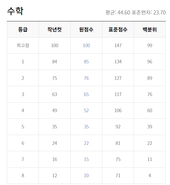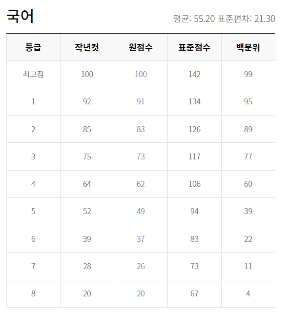 - 시험이후, 시험점수대의 백분위를 확인 할수 있습니다. 백분위는 각 과목 영역별 개인의 상대적인 서열을 나타내는 수치입니다. 즉 백분위가 높을수록 좋습니다.
