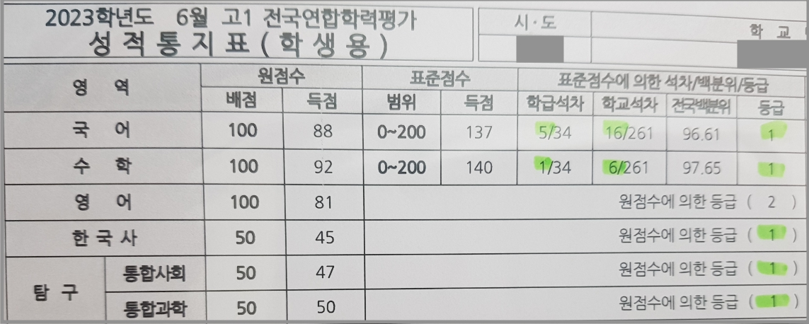 영어 2등급 를 제외한 모두 1등급을