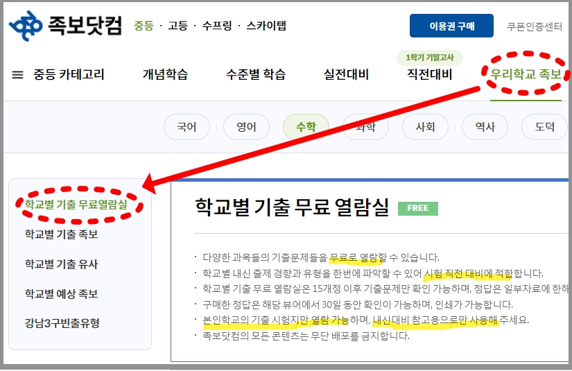 현재 남2가 다니는 중학교는 1학년 1학기는 지필고사가 없습니다. 2학기부터 지필고사 예정인데요. 너무 농땡이 ? 를 부리는것 같아서 6월말 경쯤 수학 테스트를 해보려고 족보닷컴을 검색해 보았습니다.